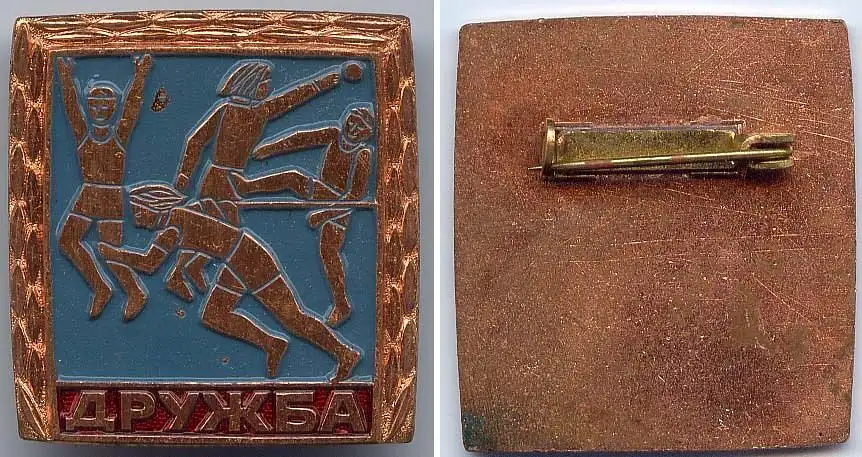 You bid at a old medal from the GDR (German Democratic Republic). GDR JP badge: three badge DRUSHBA (Friendship). Das Abzeichen ist im gebrauchten Zustand, mit Gebrauchsspuren.