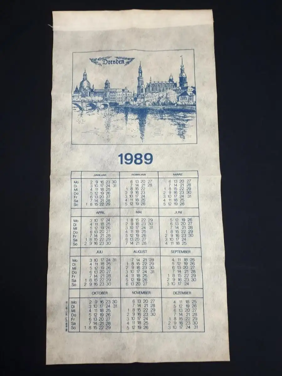 DDR, retro, vintage, Textilkalender, Stoffkalender, 1989, Dresden