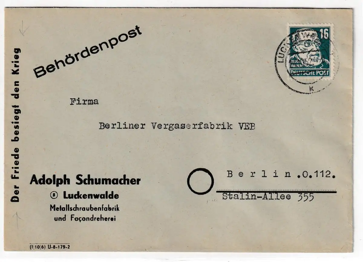 DDR: Losungsstempel "Der Friede besiegt den Krieg"