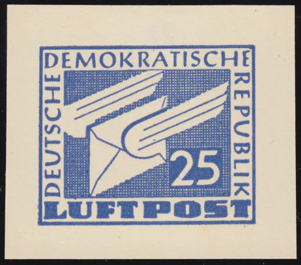 DDR Luftpost in blau - unverausgabter Probedruck, ohne Gummi, geprüft BPP