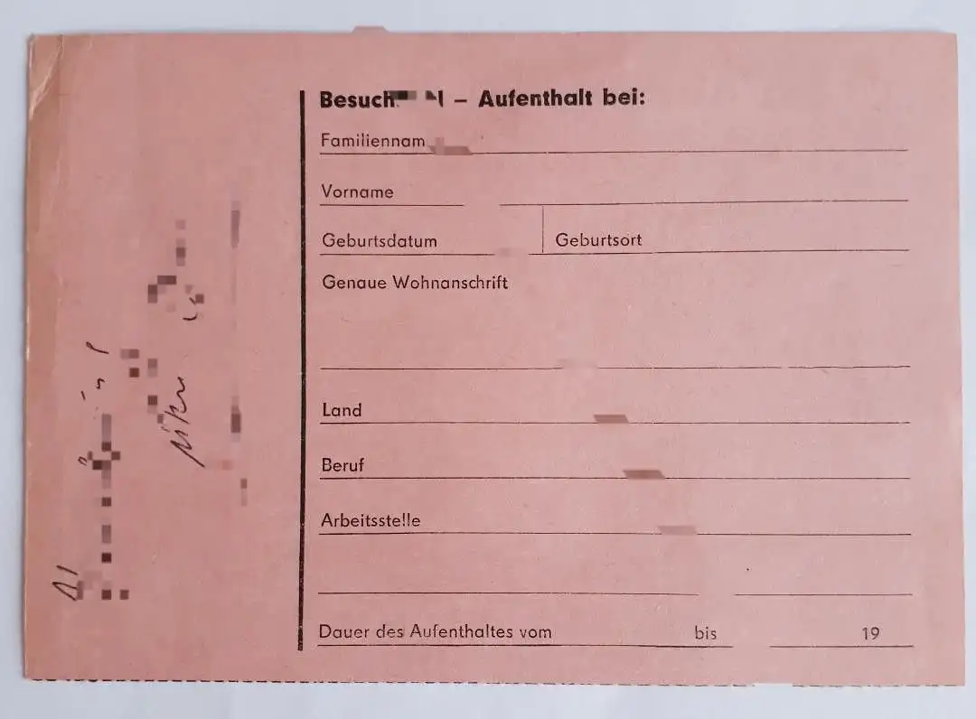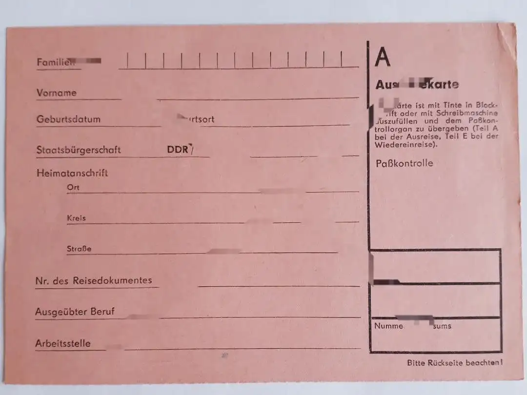 DDR MdI Ausreisekarte -am Rande beschrieben-