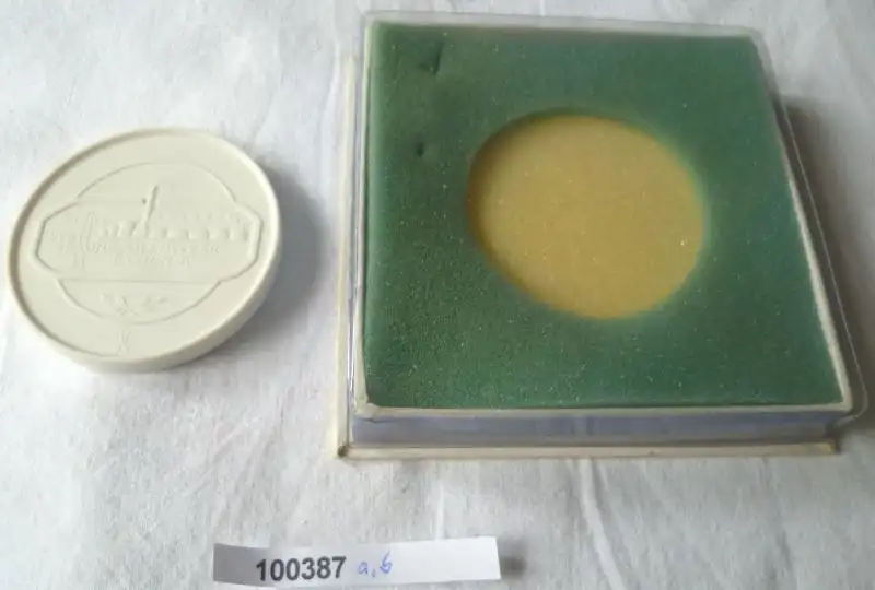 seltene Porzellan Medaille aus weißem Meissner Porzellan, Vorderseite: Bergbauhämmer, Rückseite: VEB Braunkohlenwerk Borna, gekreuzte Schwerter, Gewicht: 39,2 Gramm, Durchmesser 64 mm, im transparentem Originaletui, sehr gute Erhaltung siehe Bild,