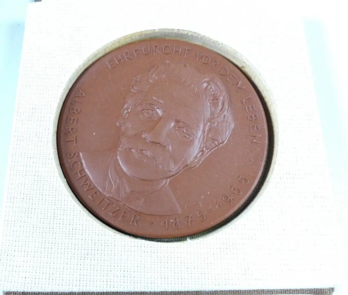 Bitte schauen Sie auch in unsere anderen Auktionen und in unseren Shop DDR Meissen Medaille Albert Schweitzer 1875 - 1965 in OVPaus Böttcher Steinzeug MeissenØ 6,37 cm, Dicke 0,68 cm im sehr guten Zustand Die Fotos sind Bestandteil des Angebots. Auktionbedingungen über Zahlung und Versand: Bezahlung fällig nach Auktionsende. Sie werden innerhalb von 24 Stunden nach Auktionsende von uns über ebay automatisch angeschrieben. Unser Unternehmen nimmt an dem Befreiungssystem gem. § 6 Abs. 3 (ab 01.01.2009 § 6 Abs. 5) VerpackV teil, wir haben einen FREISTELLUNGSVERTRAG mit der Landbell AG geschlossen. Bitte beachten Sie auch meine anderen Auktionen! Antikhandel Wilfried Boschan Steuer ID DE 167790774 Mehrwertsteuerhinweis: Unsere Artikel unterliegen der Differenzbesteuerung, nach §25a UStG Bei den angebotenen Artikeln handelt es sich um gebrauchte Ware, ein gewisses Maß an Alterungs- und Gebrauchsspuren ist immer vorhanden. Wir geben uns die größte Mühe alles genauestens zu beschreiben, aber wir sind nur Menschen und Menschen machen manchmal Fehler.