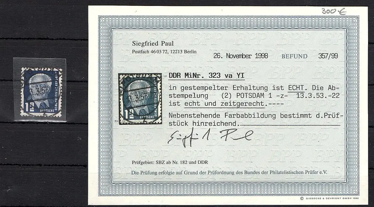 DDR. Mi.-Nr. 323 va YI gestempelt, Befund PaulBPP.
