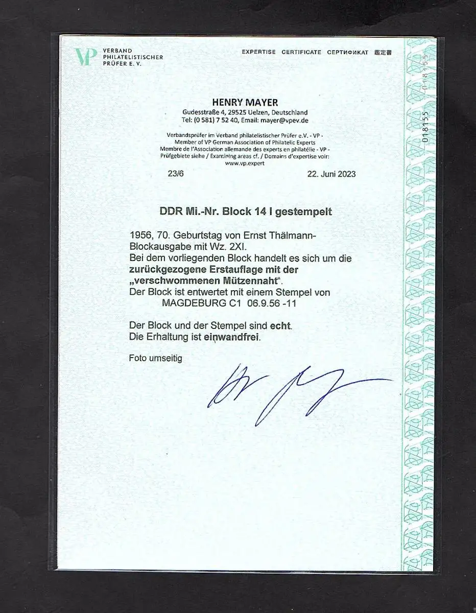 DDR. Mi.-Nr. Block 14 I gestempelt, FA. Mayer