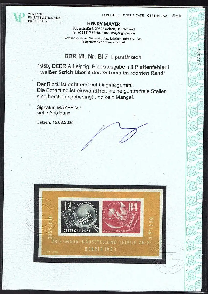 DDR. Mi.-Nr. Block 7 I postfrisch, FA.Mayer