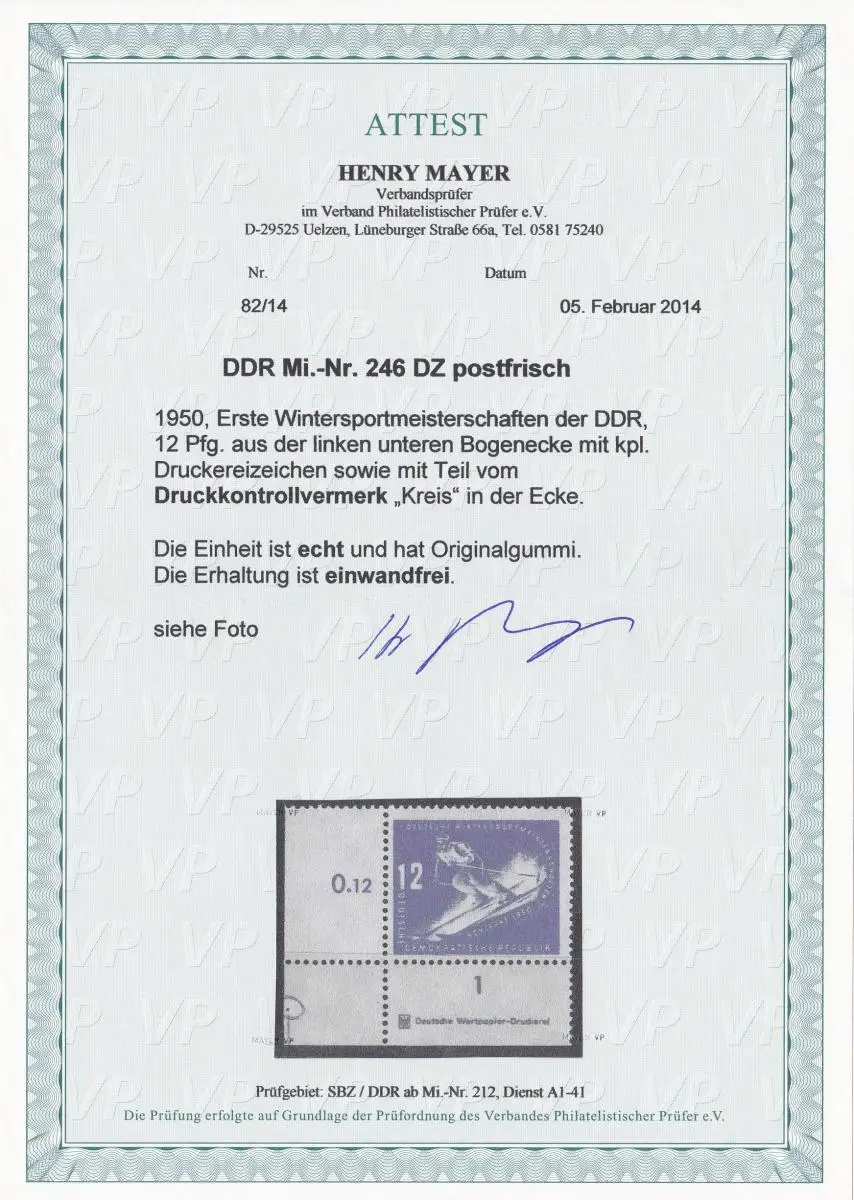 DDR: MiNr. 246 DZ, postfrisch mit Druckkontrollvermerk !!!