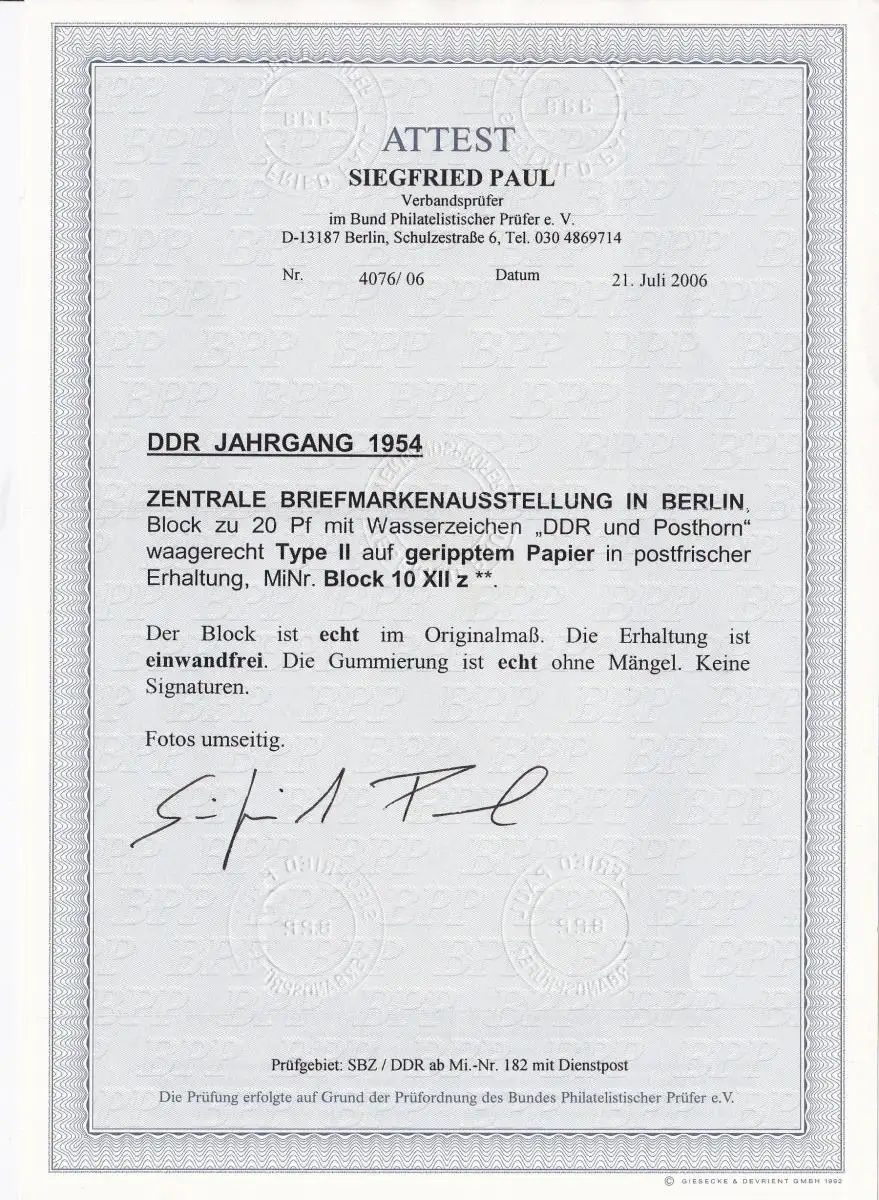 DDR: MiNr. Block 10 XII z, postfrisch, BPP Foto Attest