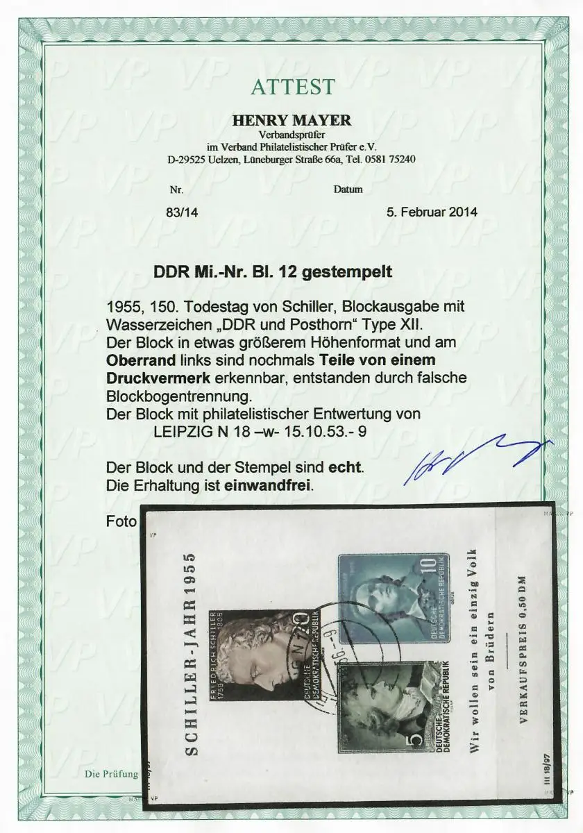 DDR: MiNr. Block 12, Type XII, gestempelt Leipzig, größeres Format