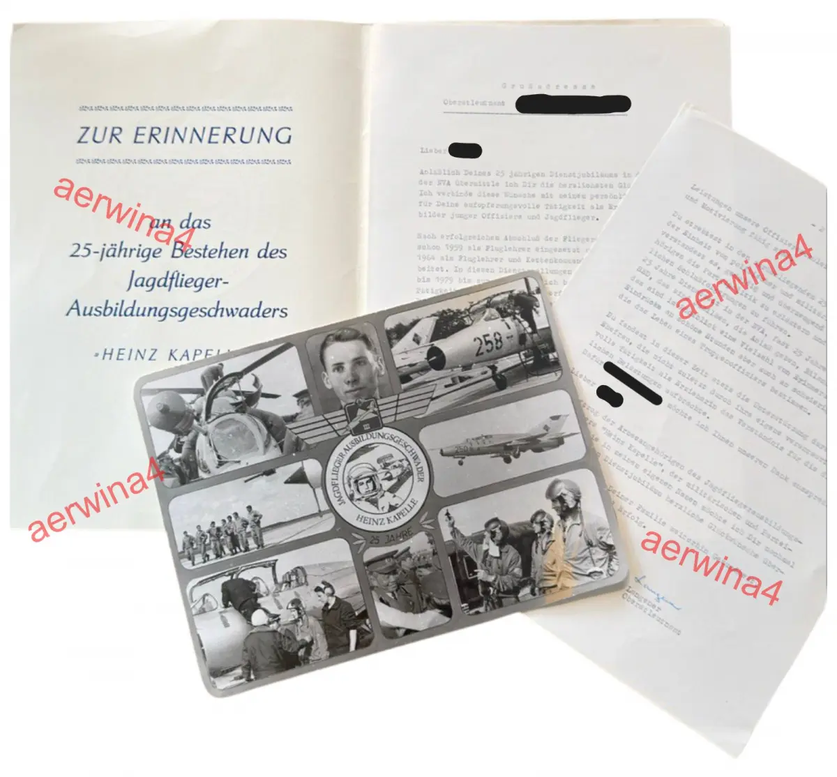 Schreiben zum 25-jährigen Bestehen des Jagdfliegerausbildungsgeschwaders „Heinz Kapelle“ mit Postkarte und Begleitschreiben vom Oberstleutnant