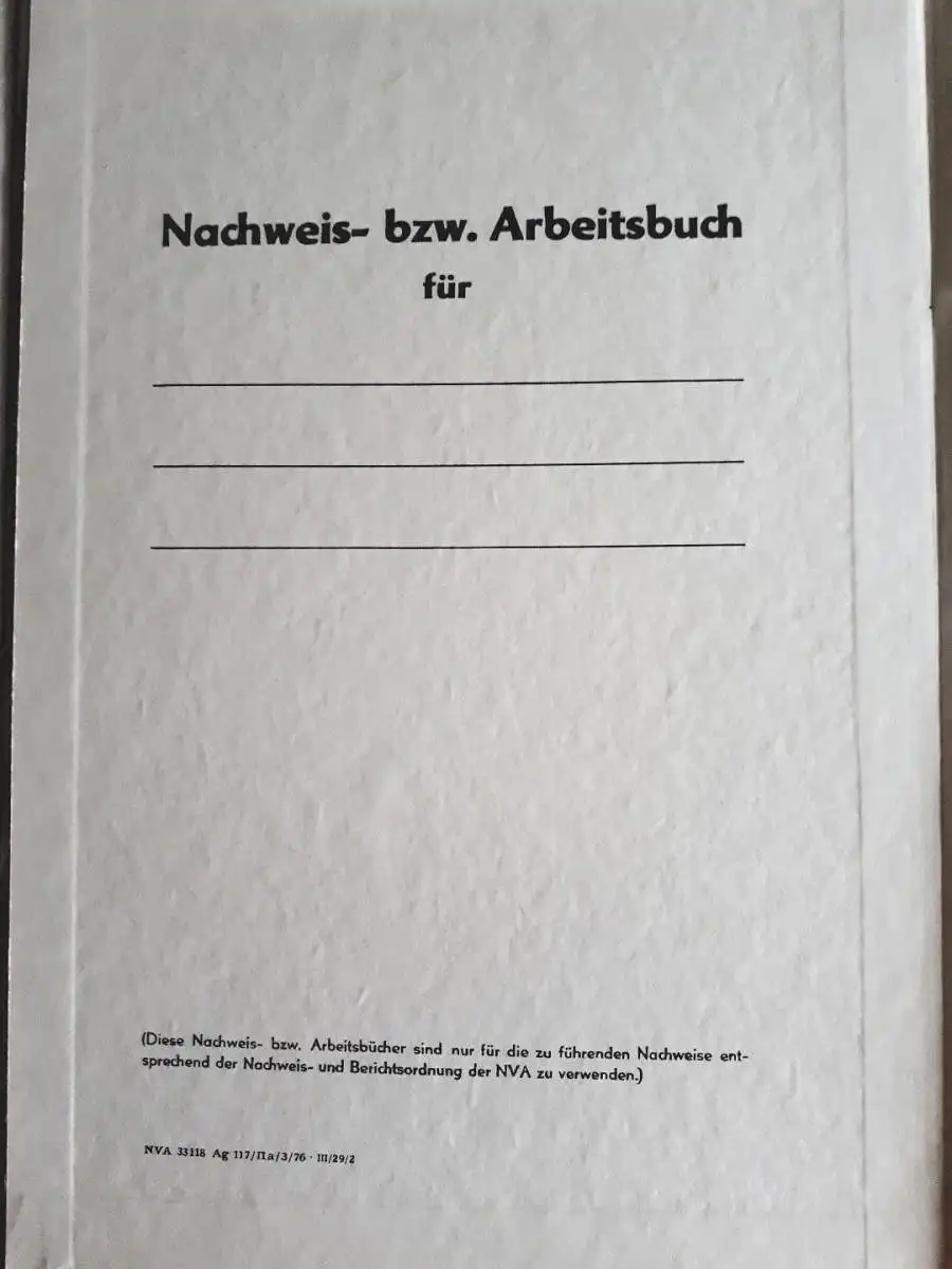 DDR NVA Nachweis- bzw. Arbeitsbuch blanko