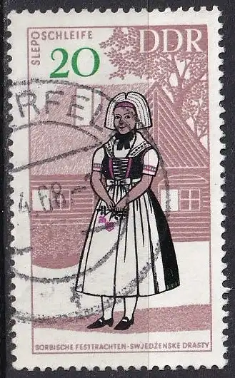 Volkstrachten (III): Sorbische Frauen-Festtrachten: Brautjungfer aus Schleife (Krs. Weißwasser)