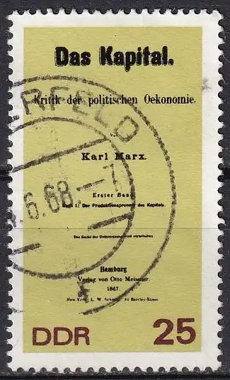 150. Geburtstag von Karl Marx: Titelseite des ersten Bandes von Das Kapital