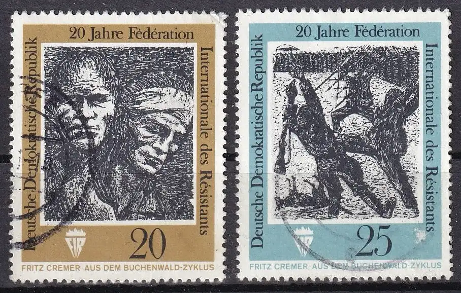 20 Jahre Internationale Föderation der Widerstandskämpfer (FIR): Lithografien aus dem Buchenwald-Zyklus von Fritz Cremer (1906 bis 1993): Missbraucht und geschunden, wozu? / Jedem das Seine