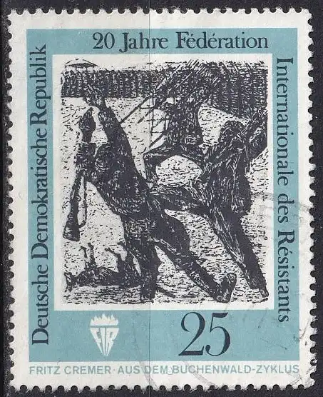 20 Jahre Internationale Föderation der Widerstandskämpfer (FIR): Lithografie aus dem Buchenwald-Zyklus von Fritz Cremer (1906 bis 1993): Jedem das Seine