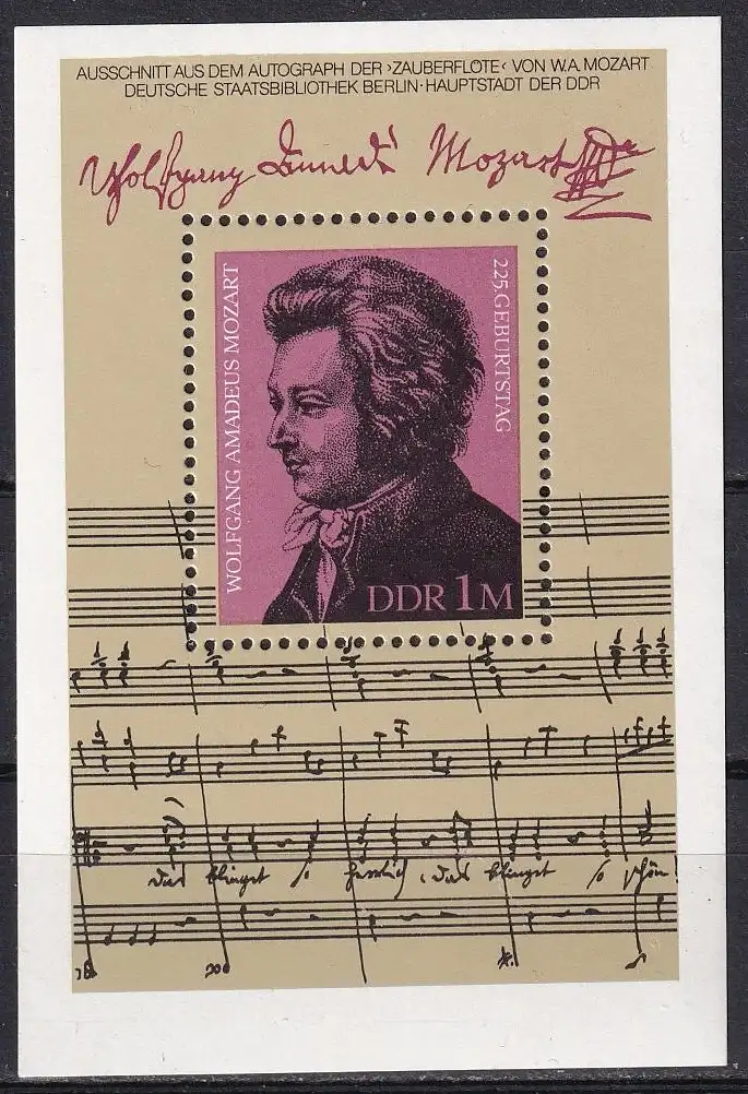 Blockausgabe: 225. Geburtstag von Wolfgang Amadeus Mozart: W. A. Mozart (1756-1791), Komponist
