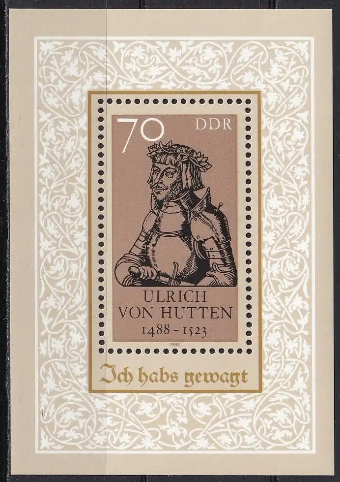 Blockausgabe: 500. Geburtstag von Ulrich von Hutten: U. von Hutten (1488-1523), Reichsritter und Humanist
