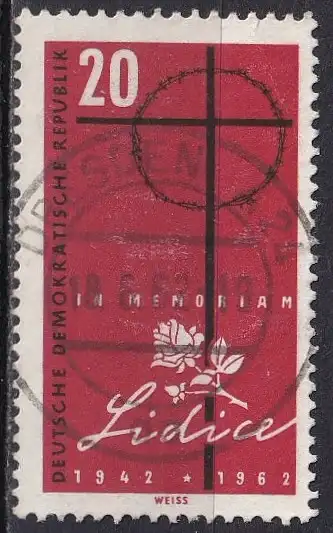 20. Jahrestag der Zerstörung von Lidice (Mittelböhmen): Kreuz mit Dornenkrone, Rose (symbol. Darstellung des tschech. Nationaldenkmals und des Rosengartens in Lidice)