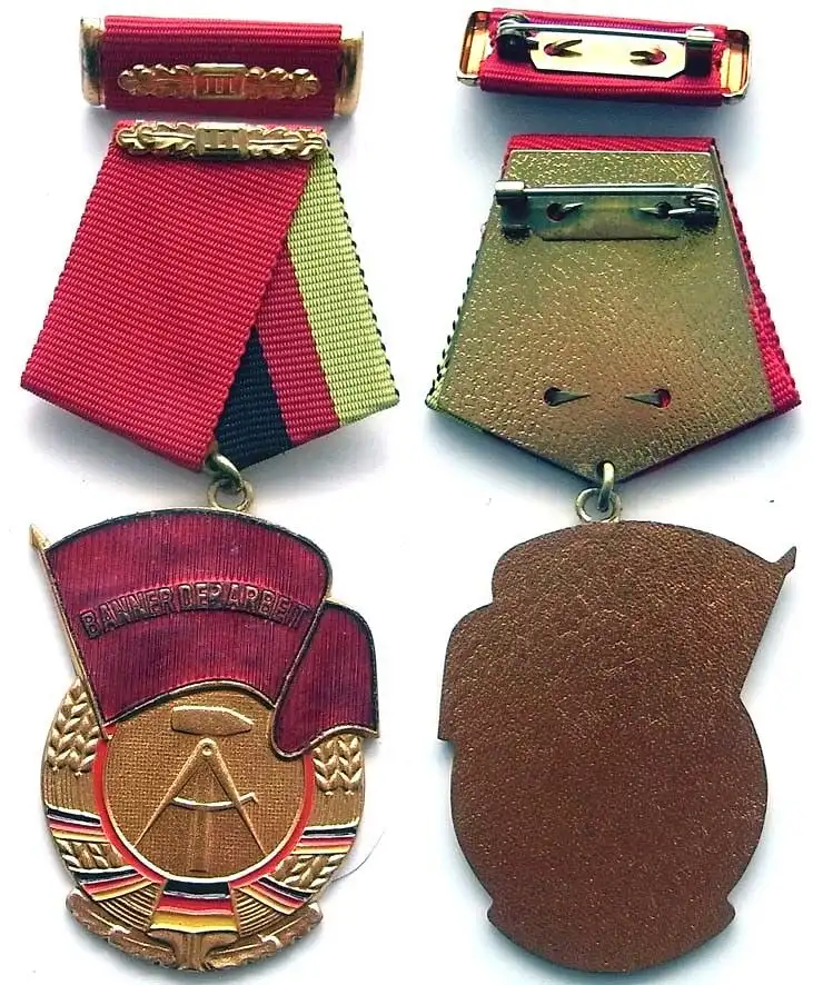 Sie sehen hier auf einen orignal alten Orden der DDR (Deutsch Demokratischen Republik). Medal "Banner der Arbeit" grade II.