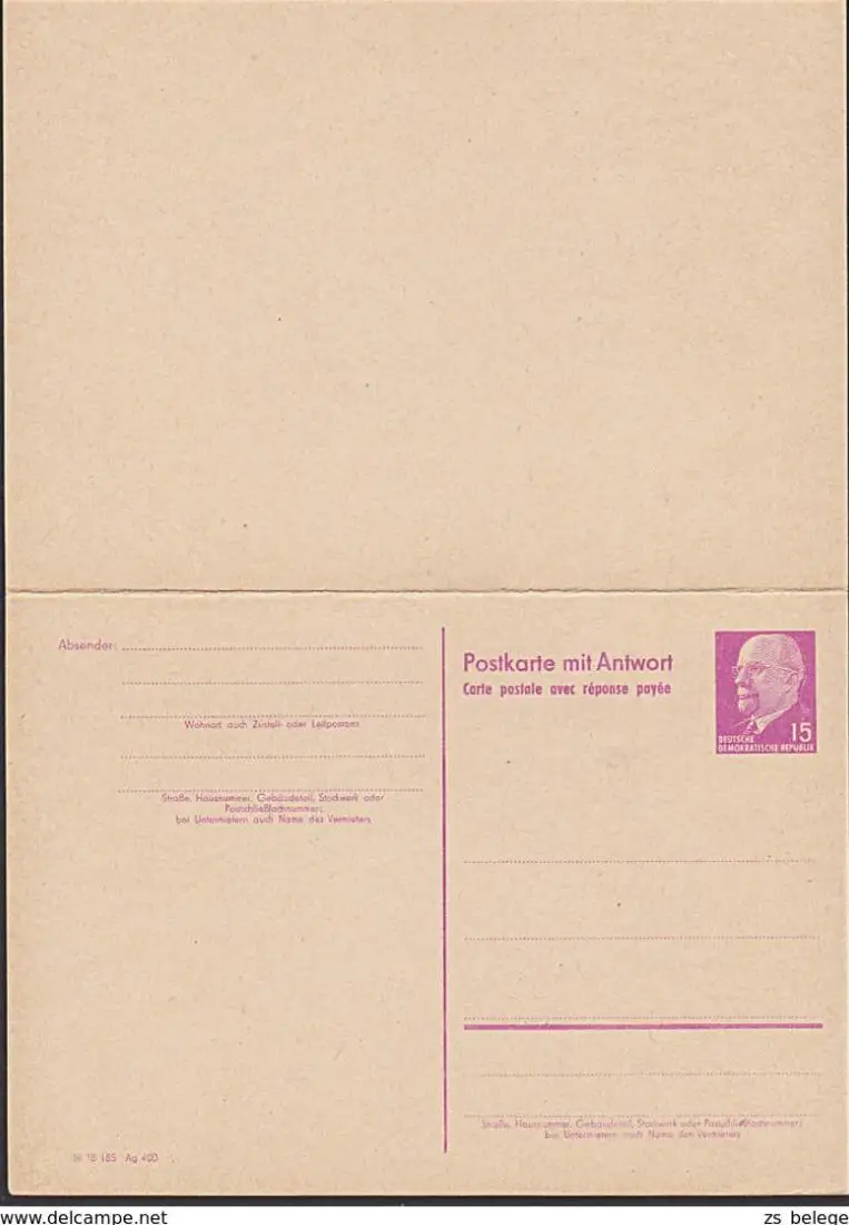 DDR P74 15/15 Pf Antwort-Ganzsache Walter Ulbricht ungebraucht kpl.