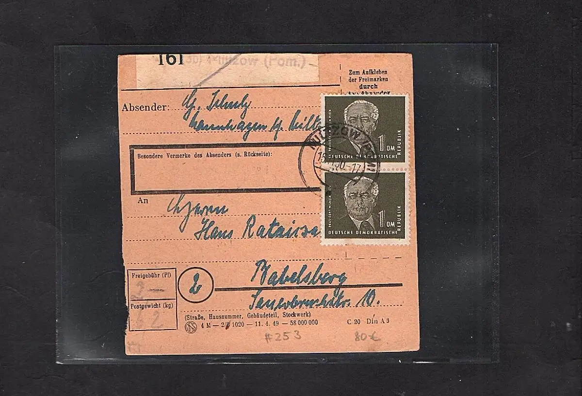 DDR. Paketkarte mit MeF. Mi.-Nr. 253