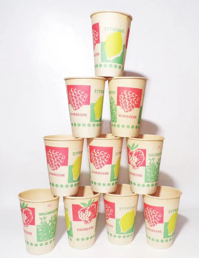 DDR Pappbecher Brause Limo Faßbrause 10 Stück Konsum Jahrmarkt Deko Laden