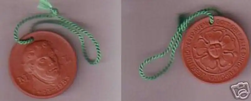 Medaille aus braunem Meissner Porzellan, Vorderseite: Martin Luther 1483-1983, Rückseite: Lutherrose, Gott über alle Dinge fürchten leben und vertrauen, Gewicht: 14,00 Gramm, Durchmesser: 40 mm, gute Erhaltung siehe Bild,