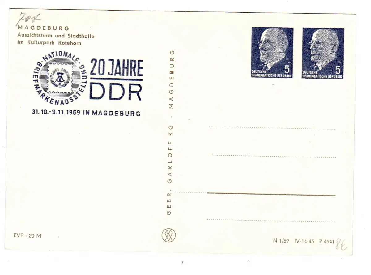 DDR Privatganzsache Magdeburg/20 Jahre DDR