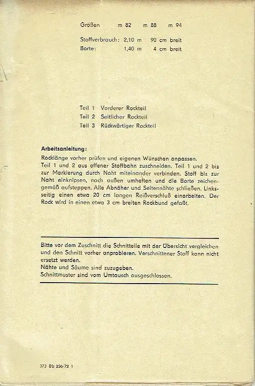 DDR-Schnittmusterbogen für Damen-Rock.