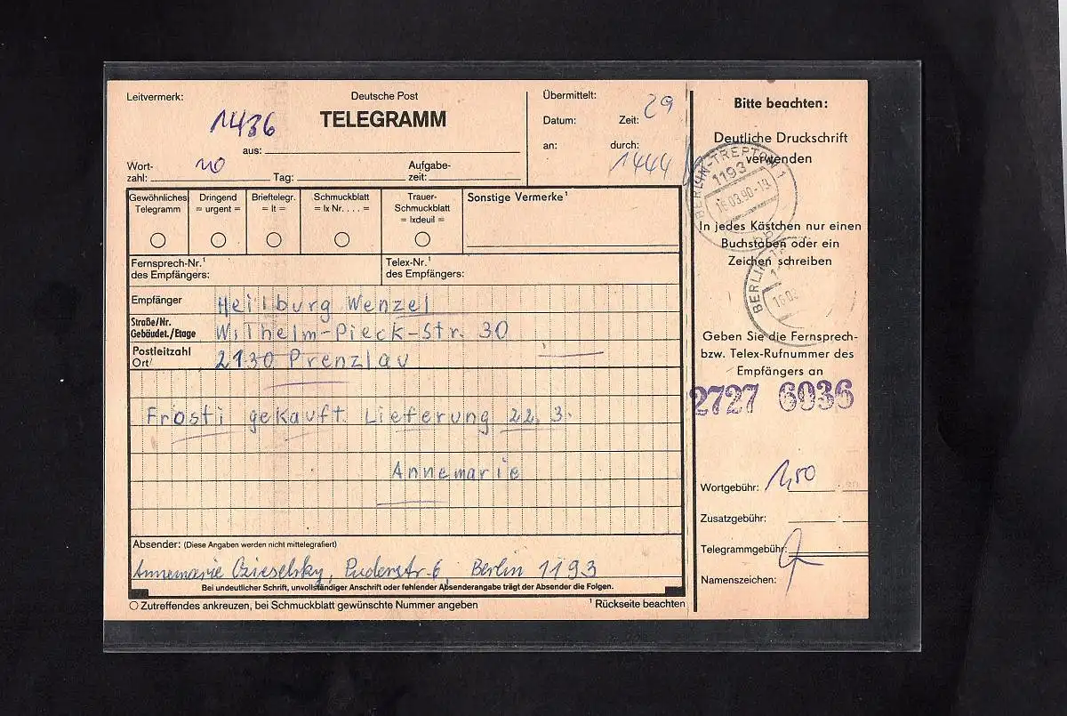 DDR., Telegramm mit Me.F. Mi.-Nr. 3304