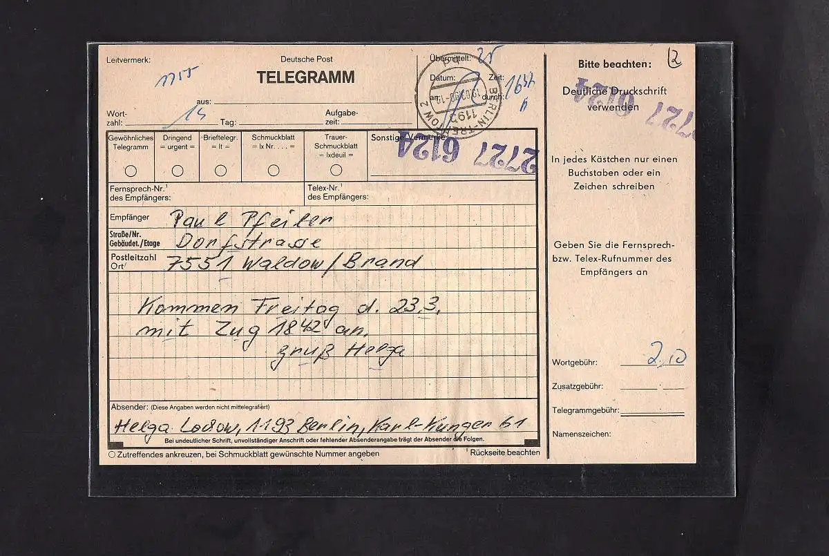 DDR., Telegramm mit Me.F. Mi.-Nr. 3316