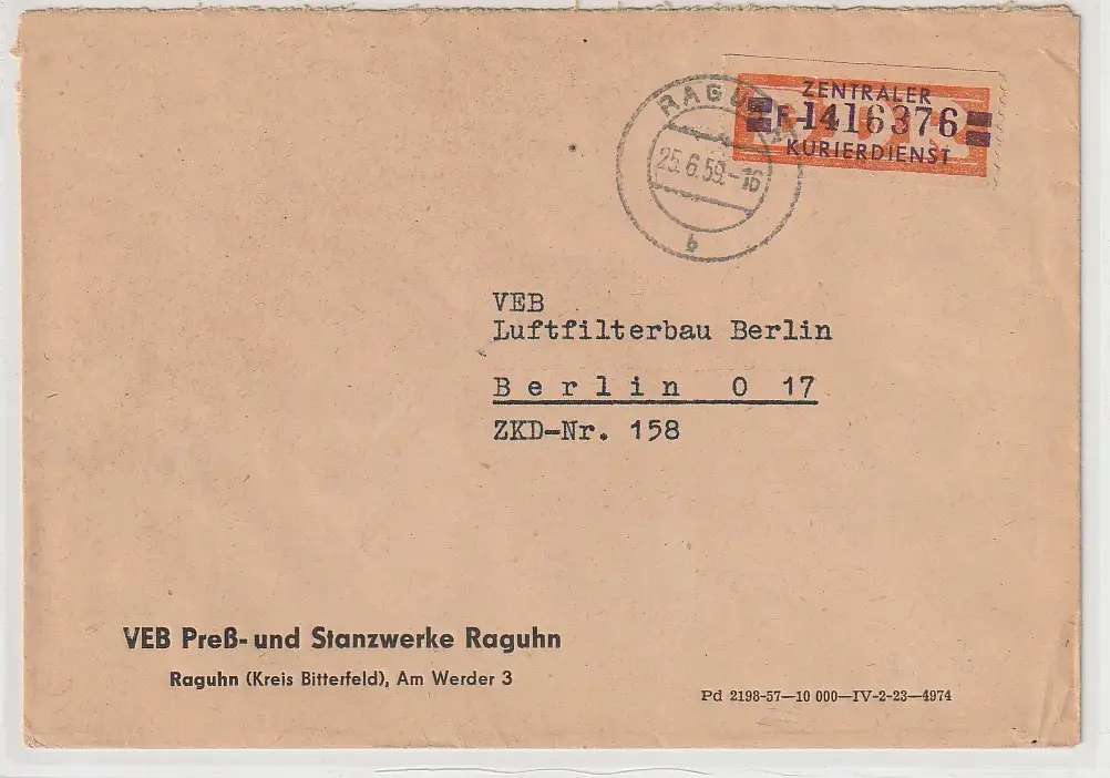 DDR, ZKD-Brief frankiert mit Nr. 23 F