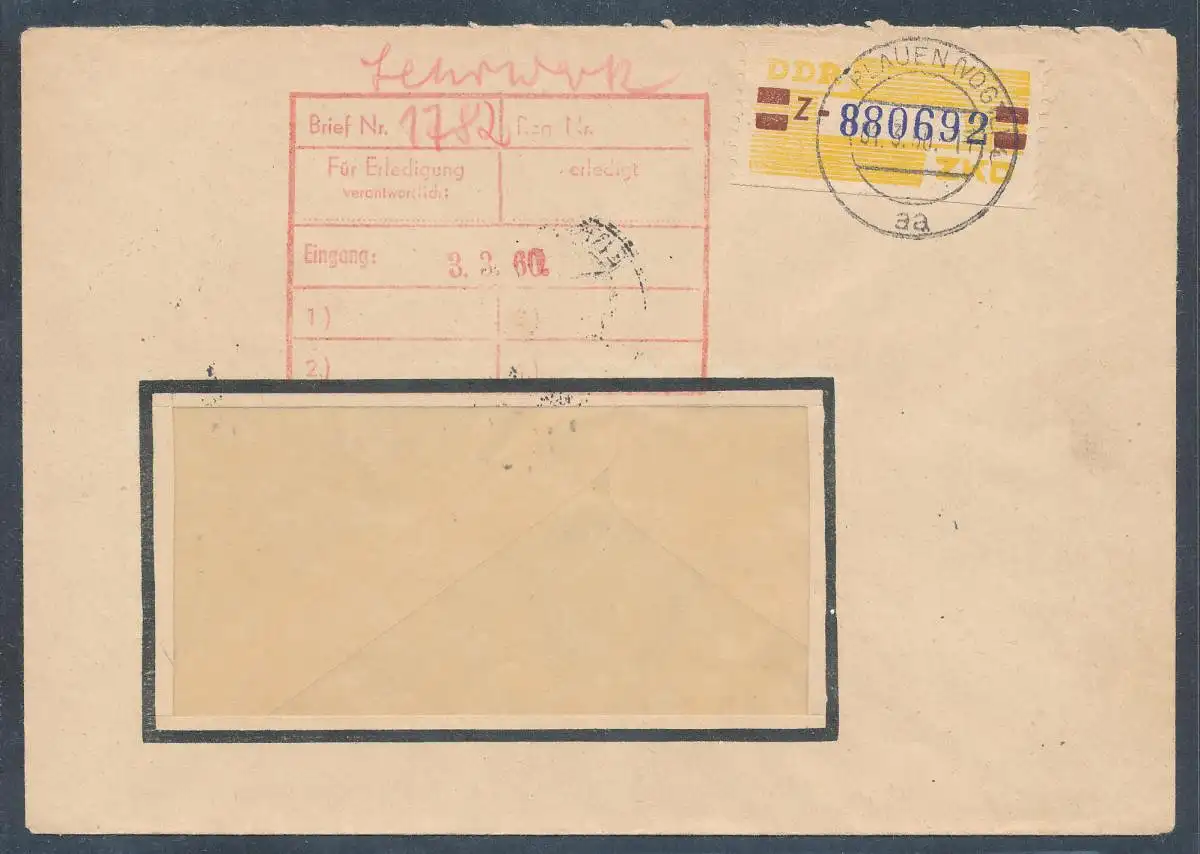 DDR. ZKD-Brief mit EF. Mi.-Nr. 25 Z