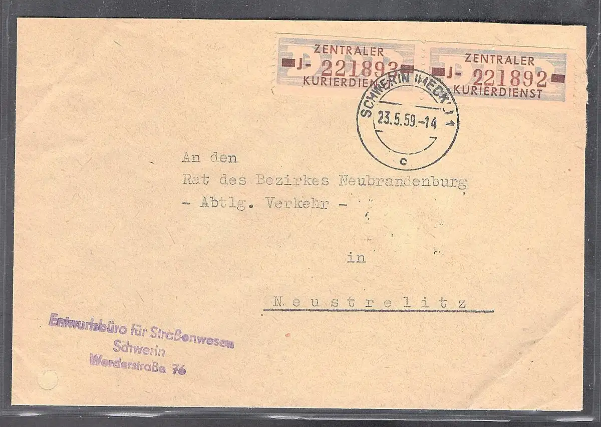 DDR. ZKD-Brief mit MeF. Mi.-Nr. 20 J