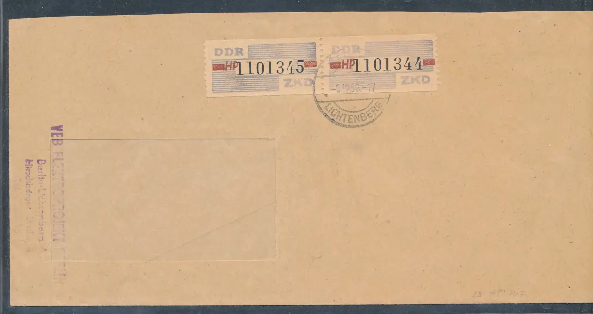 DDR. ZKD-Brief mit MeF. Mi.-Nr. 28 HP