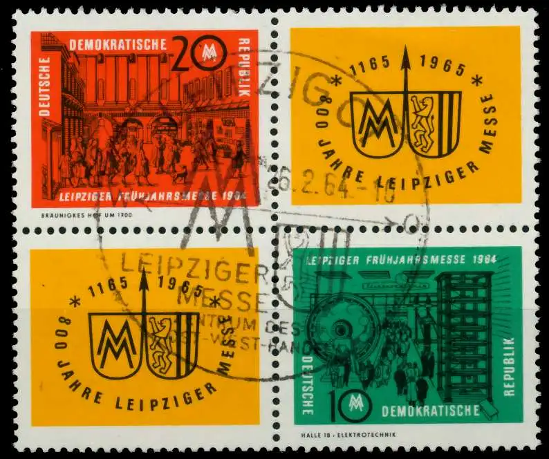 Ausgabe Leipziger Frühjahrsmesse 1964 im Viererblock mit zwei Zierfeldern 20-ZF / ZF-10 (MichelNr.: 1012, 1013)