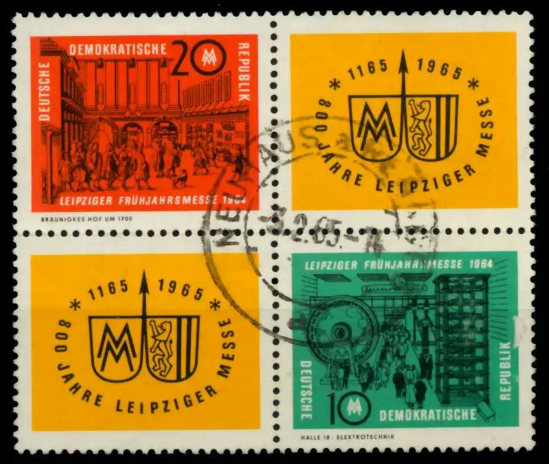 Ausgabe Leipziger Frühjahrsmesse 1964 im Viererblock mit zwei Zierfeldern 20-ZF / ZF-10 (MichelNr.: 1012, 1013)