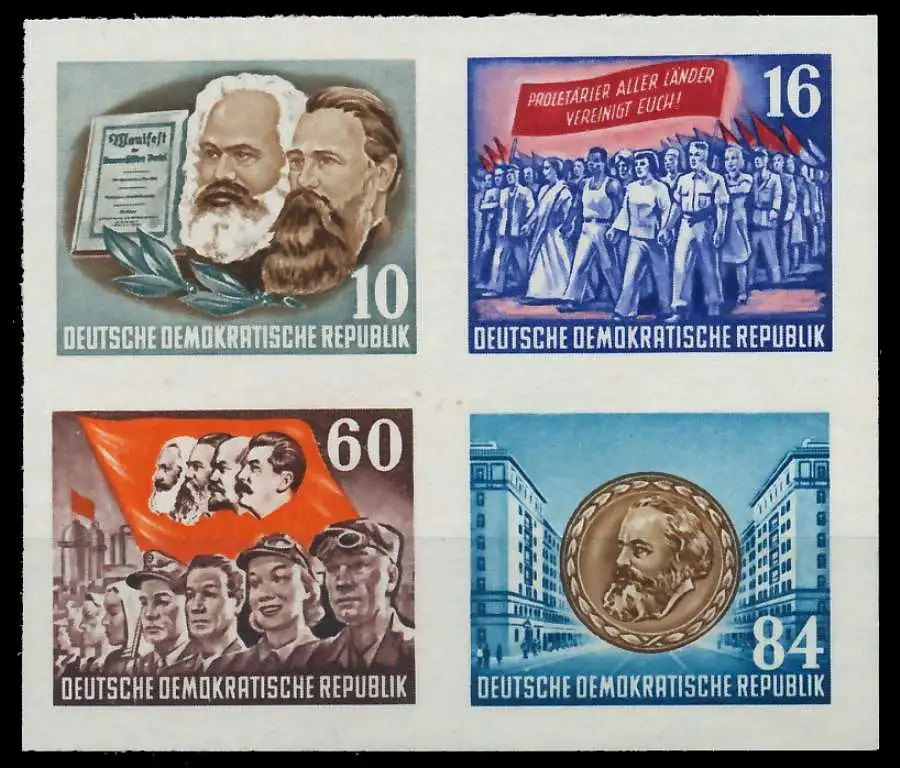 4er Block aus der Blockausgabe Karl Marx (MichelNr.: 9, 392, 393, 394, 395)