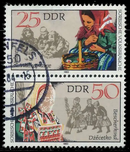 25 + 50 Zusammendruck aus der Ausgabe Sorbische Volksbräuche (MichelNr.: 245, 2718, 2721)