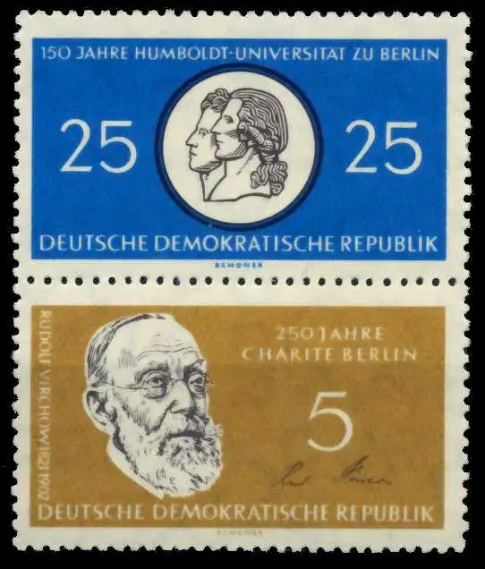 25+5 Pfg Zusammendruckausgabe aus der Ausgabe 150 Jahre Humboldt-Universität (MichelNr.: 14, 798, 795)