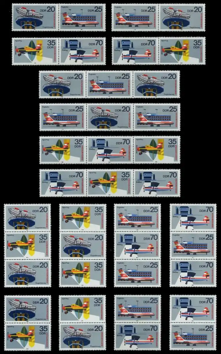 16 Zusammendruckausgaben aus der Ausgabe 25 Jahre Interflug (MichelNr.: 2516, 2517, 2518, 2519)