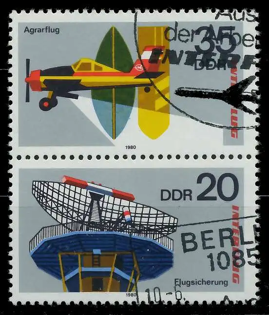 35 + 20 Wert aus der Zusammendruckausgabe 25 Jahre Interflug/Luftpostausstellung Aerosozphilex (MichelNr.: 203, 2516, 2518)