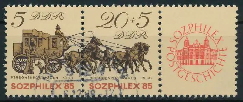 5 + 20 Pfg + ZF Ausgabe Sozphilex 85, Zusammendruck (MichelNr.: 16, 2965, 2966)