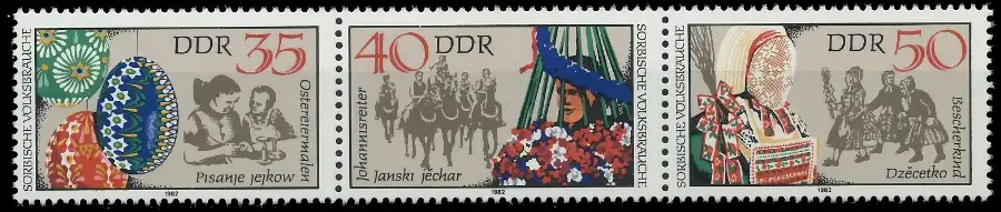 35 + 40 + 50 Zusammendruck aus der Ausgabe Sorbische Volksbräuche (MichelNr.: 538, 2719, 2720, 2721)