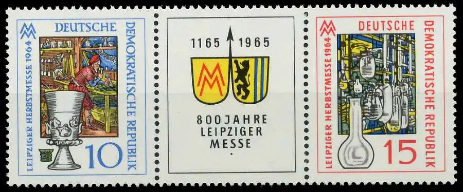 10 + ZF + 15 Zusammendruck-Ausgabe - Leipziger Herbstmesse 1964 (MichelNr.: 141, 1052, 1053)
