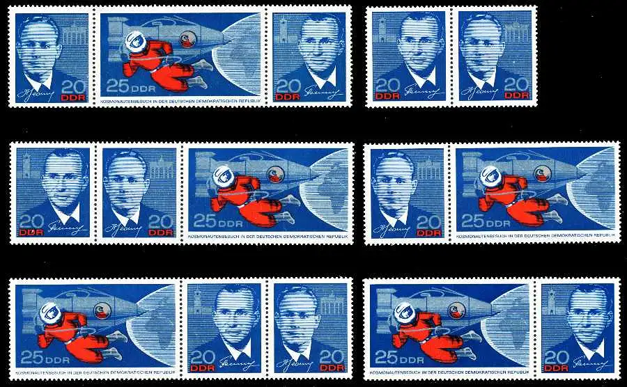 6 Zusammendruckausgaben aus der Ausgabe Besuch sowjetischer Kosmonauten (MichelNr.: 1138)