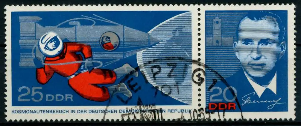 25 + 20 Zusammendruck-Ausgabe Kosmonautenbesuch (MichelNr.: 158, 1139, 1140)
