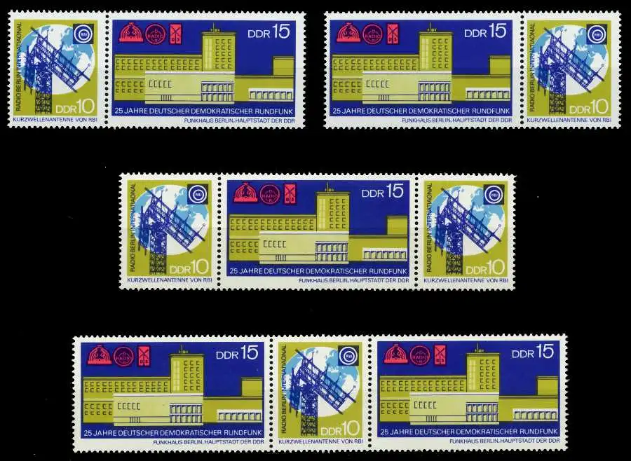 Zusammendruck-Ausgaben 25 Jahre DDR Rundfunk 4 Zusammendrucke (MichelNr.: 217, 1573, 1574)