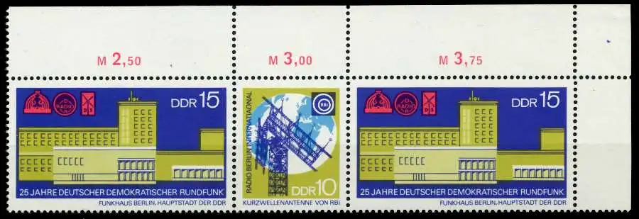 15 + 10 + 15 Zusammendruck-Ausgabe 25 Jahre DDR Rundfunk Zusammendruck (MichelNr.: 220, 1573, 1574)