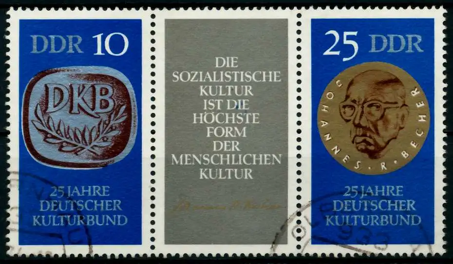 10 + ZF + 25 Zusammendruck-Ausgabe 25 Jahre Deutscher Kulturbund (MichelNr.: 230, 1592, 1593)